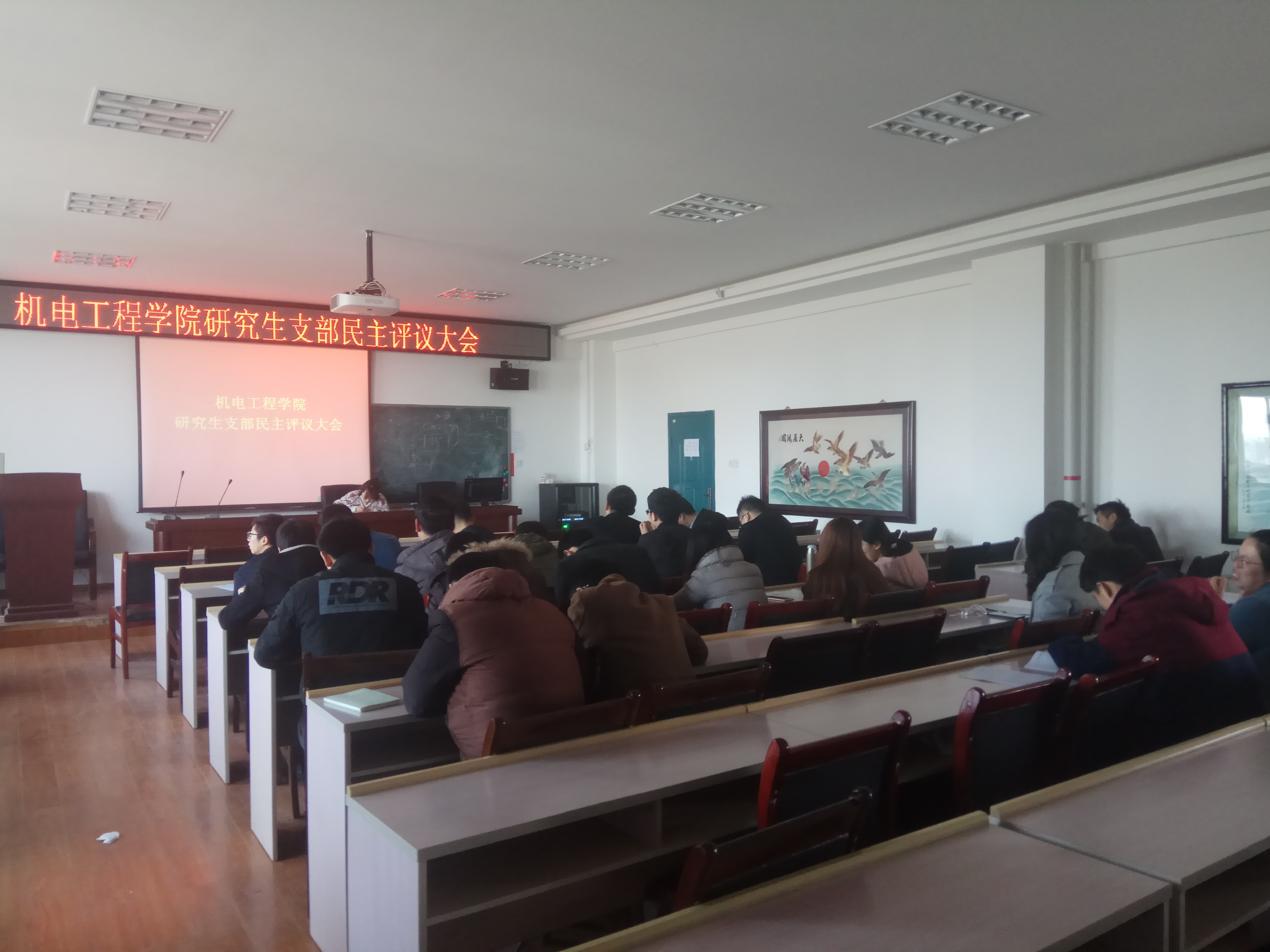2018年3月9日中午,中南林业科技大学机电学院研究生党支部在我校逸夫楼633召开了党支部民主大会。大会的的主要内容有:一、各个党员同志进行自评和他评,二、分章节学习十九大报告全文。机电学院全体研究生党员参加此次会议,会议由支部书记陈星主持。
