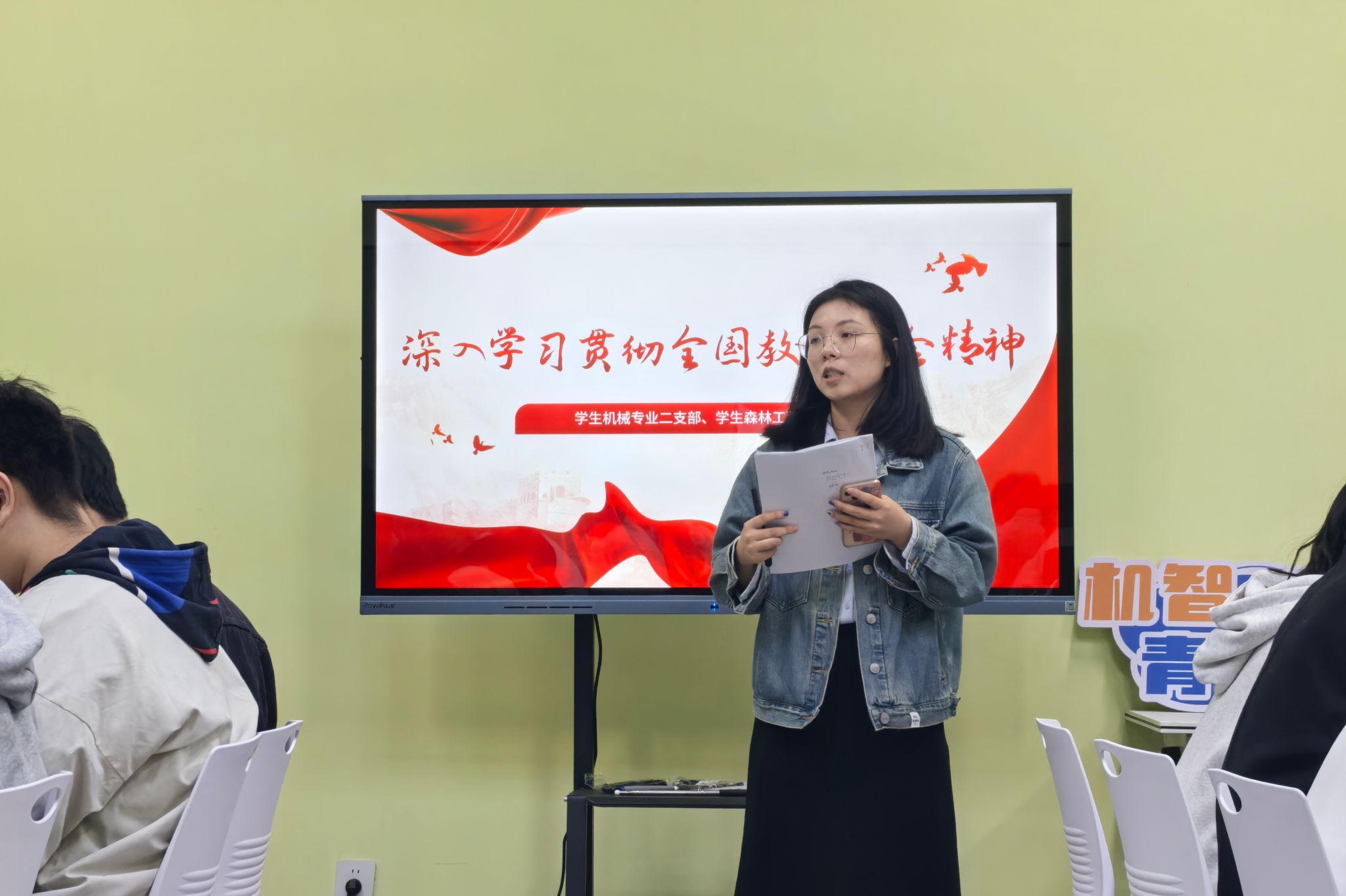 黎艳梅以严谨的态度和深刻的见解,带领在场党员同志深入研习全国教育大会精神,为党员们夯实思想基础,明确了在新时代背景下教育对于国家发展和民族复兴的重大使命。