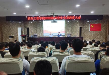 为进一步加强毕业生党员教育管理工作,提高党性意识、增强组织观念、树牢党员形象,6月8日上午,机电工程学院在图书馆立言厅召开了2022届毕业生党员教育大会。学院党委副书记潘日鸣主持大会,学院党委书记陈鹤梅,学生支部书记汪柯岑、李玲玉、任剑豪,全体本科毕业生党员和毕业研究生党员参加了会议。