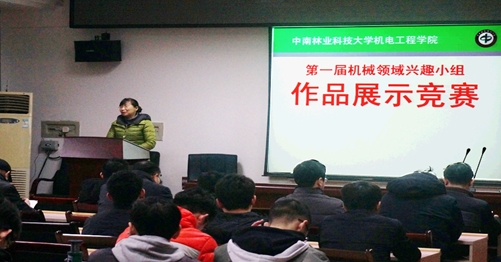 2018年1月4号上午9点,我院举行了机电工程学院第一届机械专业领域兴趣小组作品展示竞赛,竞赛开幕式由机械设计制造及其自动化专业负责人易春峰老师主持。闵淑辉副院长在开幕式上讲话,她希望同学们通过专业领域兴趣小组活动,掌握知识,磨炼能力,培养责任感,做到自适应学习,逐步形成创新思维、创新意识、创新能力和创新习惯,并预祝竞赛圆满成功;然后,易老师宣布竞赛规则,并介绍竞赛评审组9位专家教授。竞赛过程中,李立君院长亲临现场,观看作品,并就技术问题与同学们展开讨论。