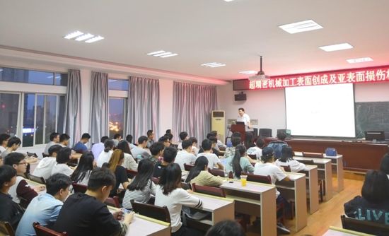 讲座中,李甲深入浅出的介绍了自己团队主要研究方向 ——“超精密机械加工表面创成及亚表面损伤机理”,并详述了该研究的实践应用。与此同时,李甲结合自身求学经历,与师生分享了他在研究生学习期间的一些趣事、际遇和挫折,大致描述了国内外学术界的区别。他强调,大学生要有自己的人生追求,要努力实现自己的社会价值,担当时代赋予的使命,他鼓励大家学习务必要打好基础,不怕困难,为继续深造做好准备。互动环节,同学们就考研方向等共同关心的事情提出问题,李甲先生耐心地进行了解答