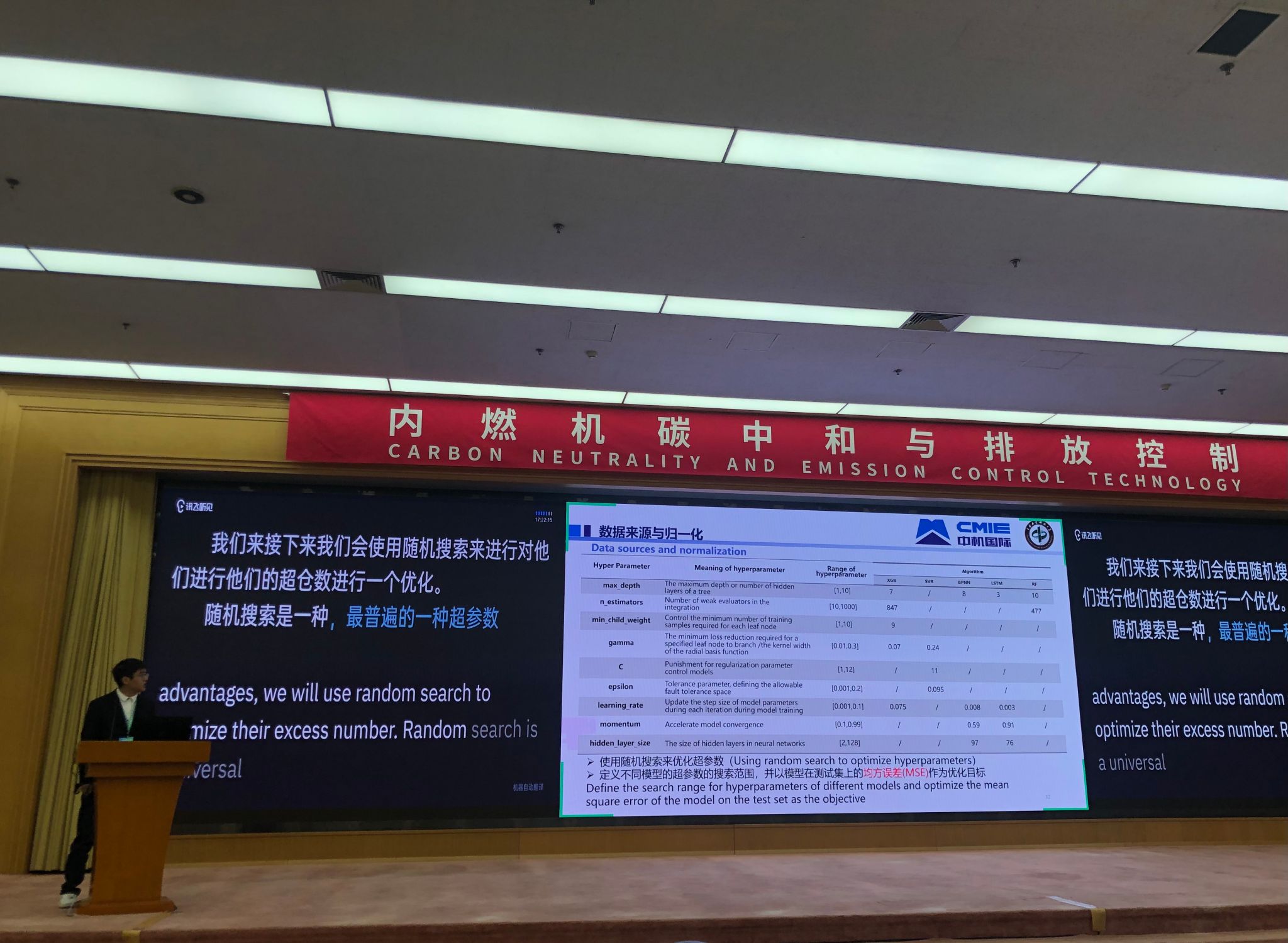 周峰课题组研究生曾文在大会“内燃机碳中和与排放控制”分会作学术报告,报告题目为《基于LSTM神经网络的非道路移动柴油机瞬态NOx排放预测》。该报告介绍了团队在内燃机排放预测模型的最新成果,采用长短期记忆网络(LSTM)来预测非道路移动机械的瞬态NOx排放,为非道路移动机械排放的实时监控技术提供了理论参考。报告受到了国内外同行的广泛关注。