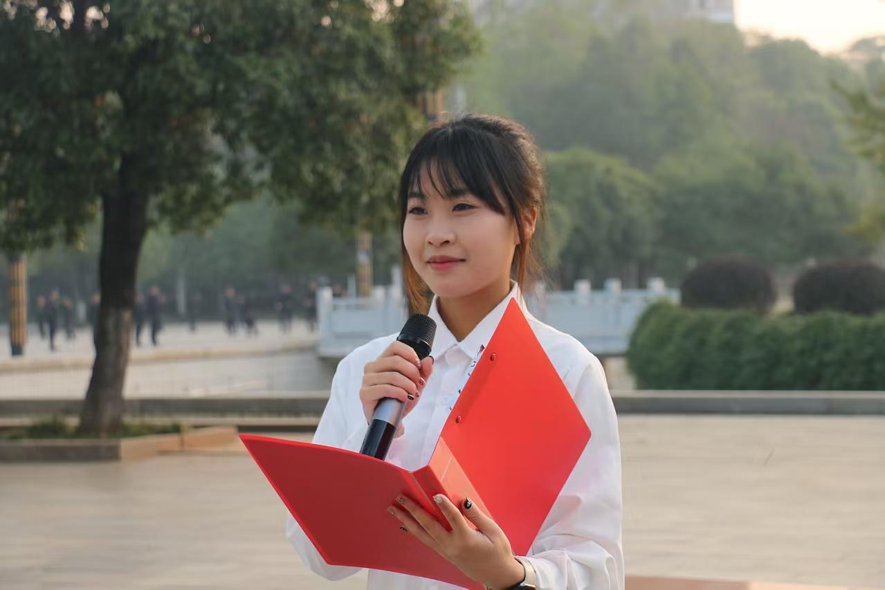 学生代表2022级新能源科学与工程1班廖文娜同学发言。她表示在大学,不仅要学知识,更要拓能力,坚持成学成才,肩负青春使命,主动担当作为,为教育强国建设贡献青春力量。
