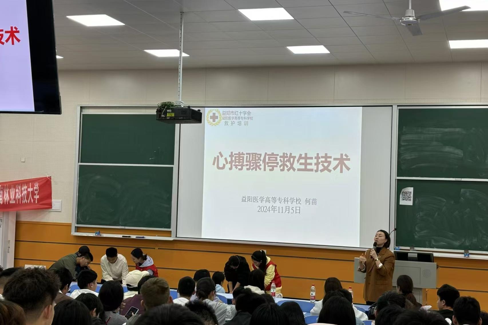 2024年11月5日晚19点,机械与智能制造学院在树木楼003教室举办智享讲坛第十五期梦享成长营活动:护航校运 “救”在身边。本次讲座由益阳市红十字会副会长何苗主讲,学院副书记徐钰婷,辅导员陈中琪、谢云霞,全体校运会志愿者、运动员参加。