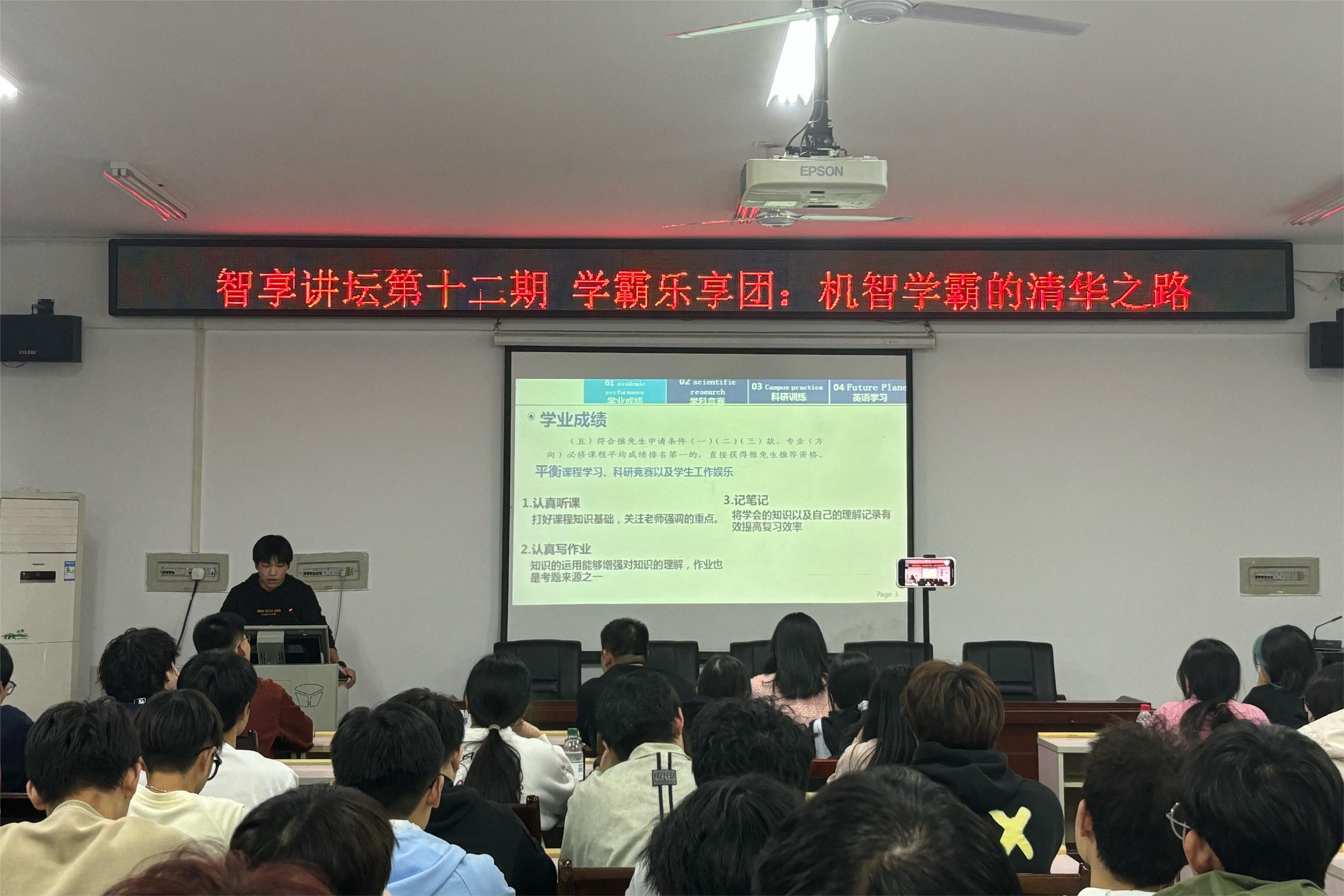 2024年10月24日晚,机械与智能制造学院在逸夫楼333举办了智享讲坛第十二期之学霸乐享团:机智学霸的清华之路。本次活动邀请了2021级能源与动力工程专业本科生万帅同学进行学习经验分享,学院辅导员及各班学生代表参与活动。