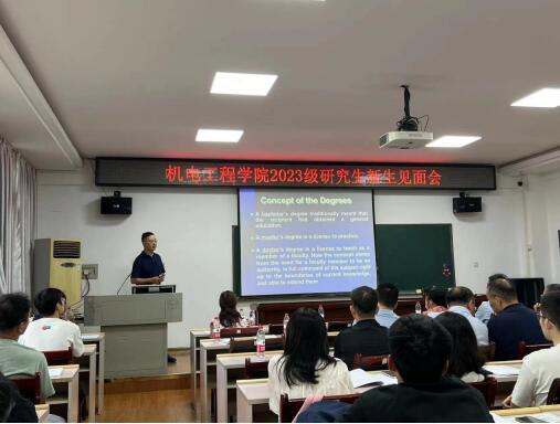 李立君对2023级研究生新生来校深造表示欢迎,介绍了我院机械工程学科设置的情况以及师资队伍、科学研究和实验平台的情况,对新生提出了希望,一是希望同学们首先是要保持学术上的求真务实和积极进取的态度,努力攻克科学难关,做出有意义的研究成果;二是要博采众长,开拓视野、启迪思维,注重人文素养的培养,加深对社会和人类发展的思考,成为具有社会责任感的科研工作者;三是要寻求突破,勇于创新,蓄势而进,加深协同创新、求真务实;四是要劳逸结合,强健体魄,保持健康心态、迎难而上,把论文写在祖国大地上。