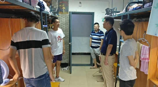 2018-2019新学期伊始,为深入了解学生的学习生活情况、强化学生宿舍安全管理,营造一个舒适、卫生、和谐、健康的环境,2018年9月2日,机电工程学院党委副书记蒋炳春及学工办辅导员走访了机电工程学院学生宿舍。