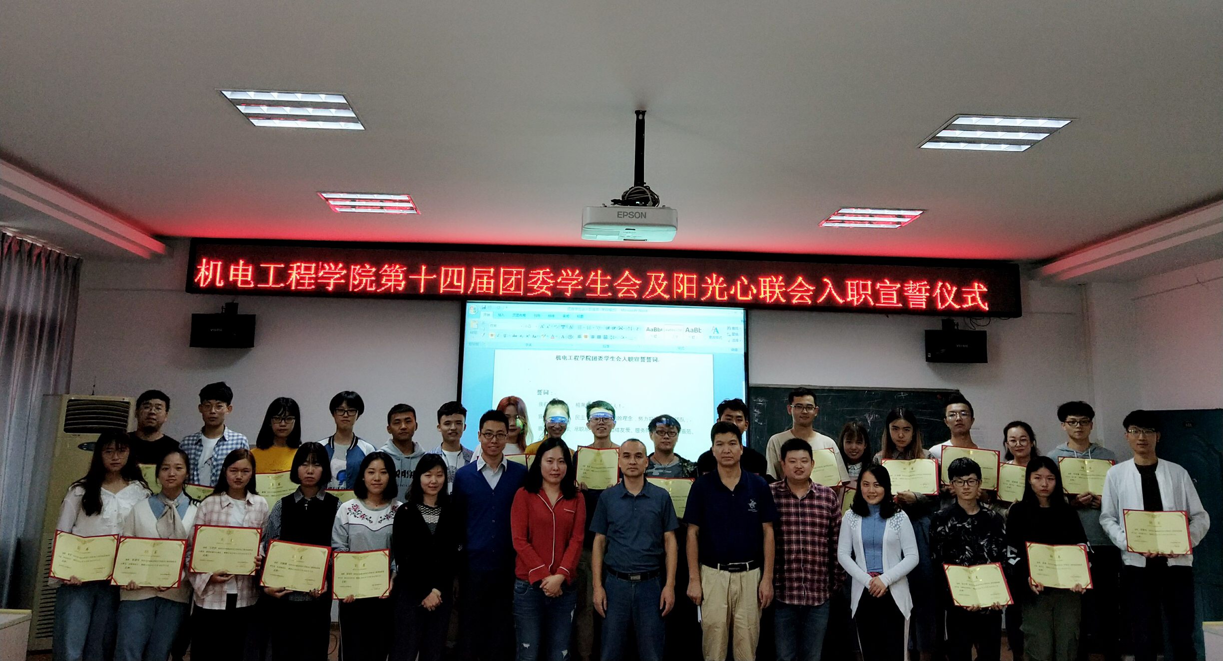 9月27日中午12:30,机电工程学院于逸夫楼633举行了第十四届团委学生会及阳光心联会入职宣誓仪式。院党委书记严爱军,副书记蒋炳春,学工办全体辅导员及第十四届学生干部参加此次宣誓仪式。仪式由院团委书记吕飞舟主持。
