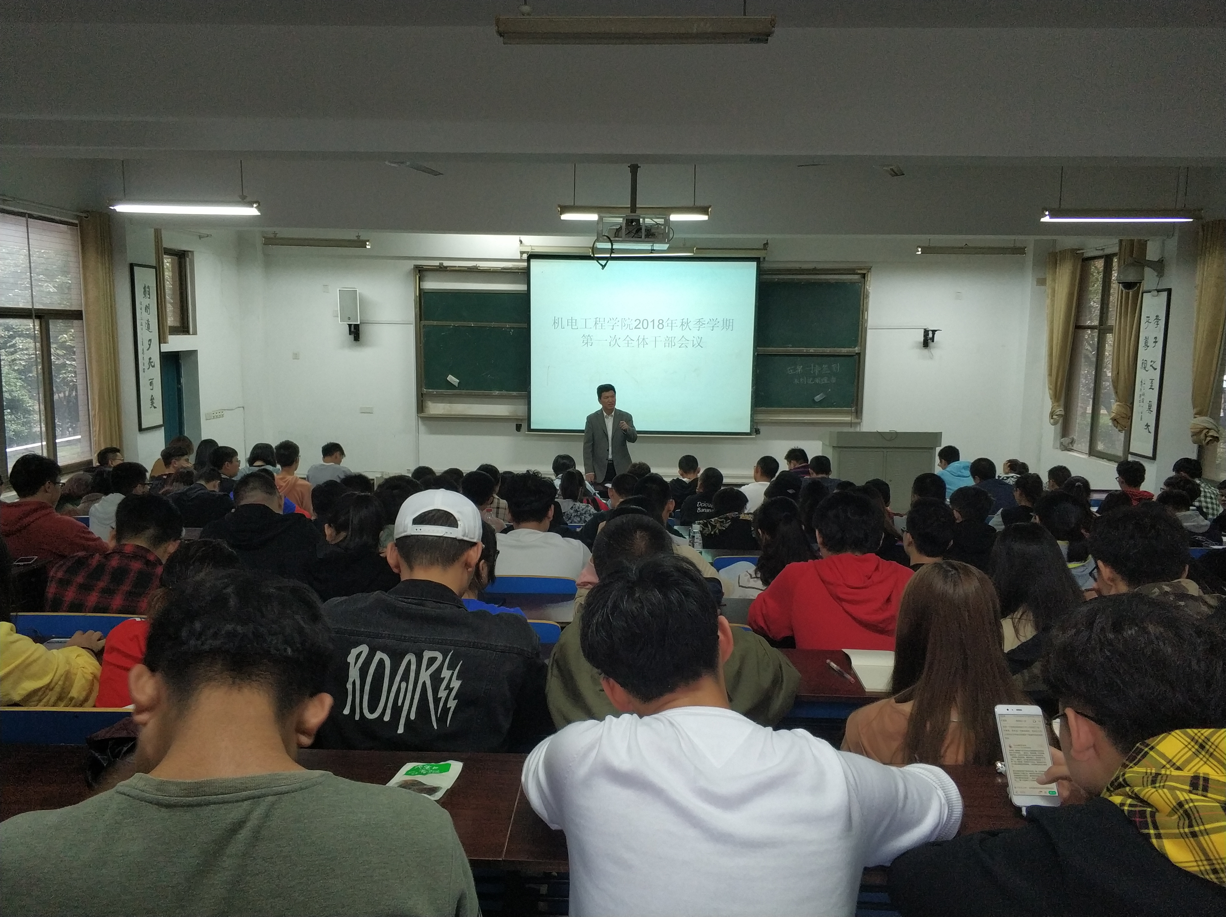 10月9日下午,机电工程学院于主教北101召开2018年秋季学期第一次全体学生干部会议。院党委副书记蒋炳春,17级辅导员李玲玉,18级辅导员武辰老师出席,我院全体学生干部参加此次会议。会议由团委书记吕飞舟主持。