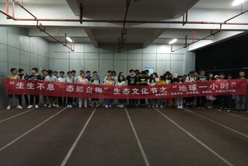 2018年4月22日晚,“生生不息,态然自得”生态文化节之“地球一小时”在校东园体育场举行,本次活动为迎接世界地球日,使学生加强对环保节能、保护地球的重视,同时加强对同学们对体育锻炼重要性的深刻认识。中南林业科技大学机电工程学院公益部联合林学院,生命科学与技术学院及风景园林学院开展的世界地球日荧光夜跑活动顺利结束。
