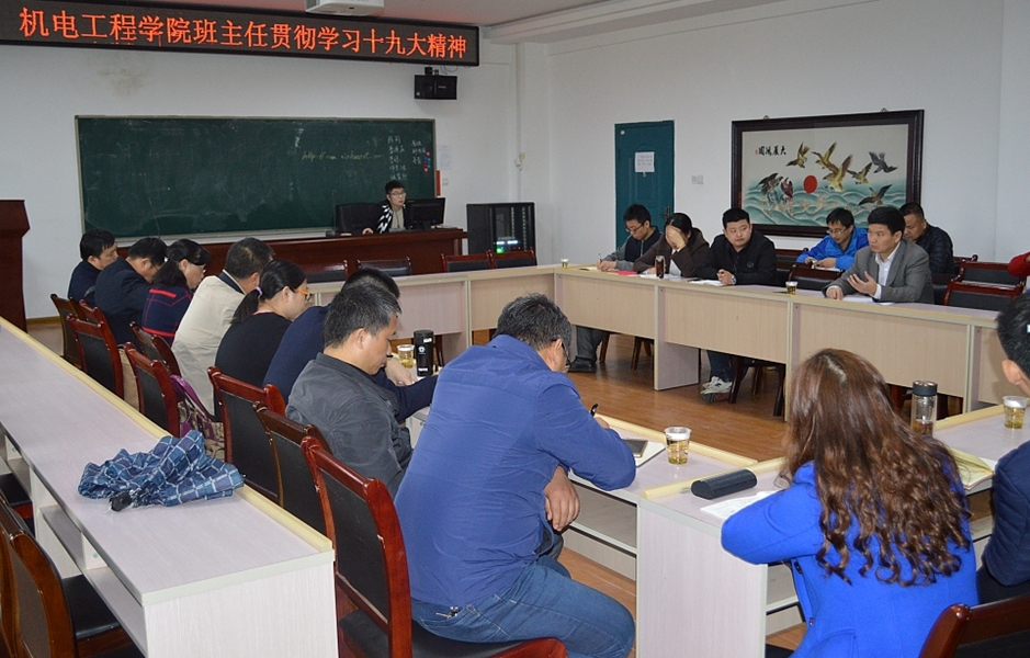 11月19日中午,机电工程学院班主任工作会议在逸夫楼633举行,学院党委副书记蒋炳春主持会议,全体班主任、学工办辅导员老师出席会议。会议安排内容有两个方面:一是学习贯彻十九大精神;二是做好工作迎接审核评估。