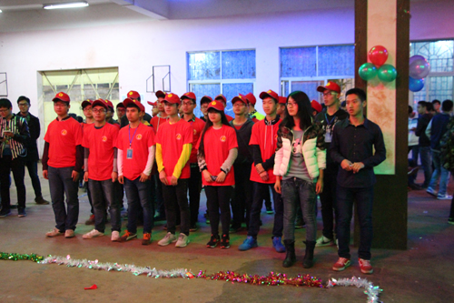“瞎子背瘸子”、“背对背运气球”、“抢凳子”、“撕名牌”等游戏摆点处充满了欢声笑语。整个party的气氛达到了高潮。