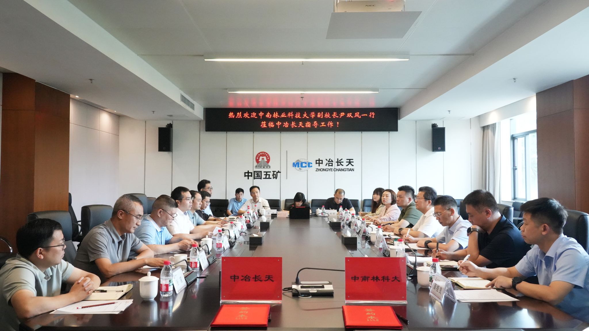 乐文毅对中南林科大为中冶长天输送高素质人才表示感谢,并介绍了中冶长天发展历程、战略规划及各业务集群的发展情况。他表示,中南林科大在学科建设、科技创新等方面成效显著,希望双方建立常态化交流机制,不断深化校企合作,在人才培养、协同创新平台打造、智慧林业装备制造、实习就业等方面实现资源共享,共同推动校企合作高质量发展。
