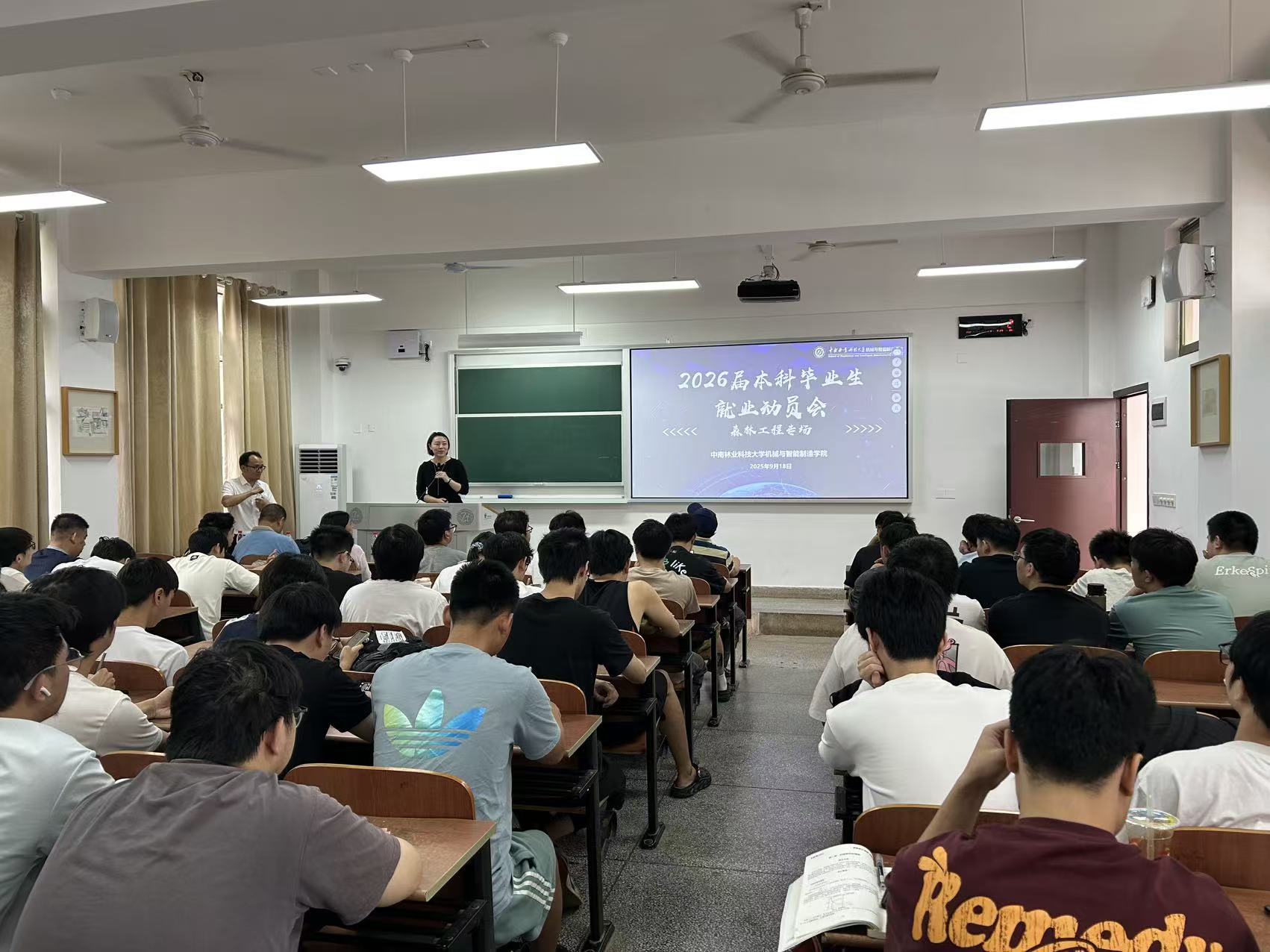 为有力推进2026届毕业生就业工作,帮助毕业生认清当前就业形势,明确就业目标,把握就业机会。9月18日上午十点,机械与智能制造学院在树人楼北504召开2026届森林工程专业毕业生就业动员大会,机智学院党委副书记徐钰婷,学院党委委员、森林工程系主任伍希志老师,森林工程专业各任课老师,22级辅导员出席会议,2026届森林工程专业全体毕业生参加。