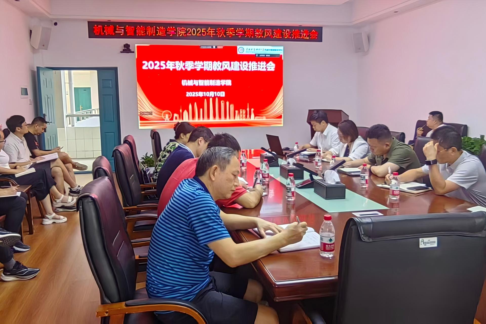 10月10日,我院在逸夫楼341,召开了2025年秋季学期教风建设推进落实会。学院院长文韬、党委书记李红军、党委副书记徐钰婷、副院长龚桂良、各系部中心主任、院教指委主任、行政办公室秘书及辅导员参加会议。会议由龚桂良主持。