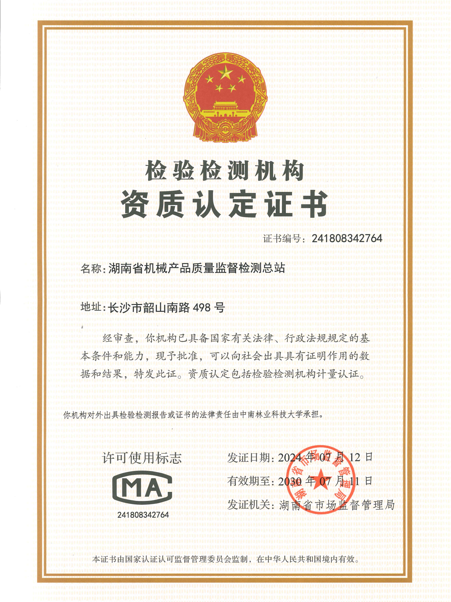 2024年5月7日,湖南省市场监督管理局评审组对“湖南省机械产品质量监督检测总站”进行了资质认定的复查+扩项现场评审。评审专家依据《检验检测机构资质认定管理办法》、《检验检测机构资质认定评审准则》及相关法律法规的要求,通过查阅文件、核对记录和报告、观察办公场地、现场试验、检查仪器设备配置及溯源,现场提问、座谈等形式开展审核。现场评审顺利通过,申请的检验能力予以推荐。