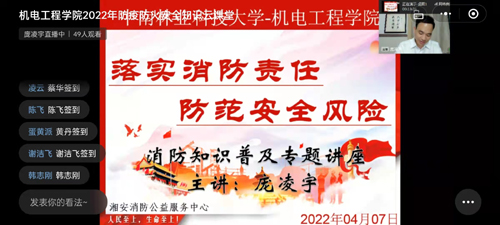 4月7日晚,机电工程学院组织全体教职工参加“落实消防责任,防范安全风险”线上直播疫情防控、消防安全知识培训。