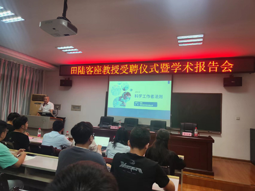 受聘仪式之后,田陆教授为学校师生作了题为《科研法则——探究科研工作者成功的奥秘》的专题讲座,总结了科研工作者20句决。他认为善于做假设是科学家的专利;人的智商来自于学习和实践,学习的本质是吸收、理解、思考和总结;调查研究是一种学习的过程,更是世界观的改变和重塑的过程。要把学习和研究当成生活方式和工作习惯,秉持穷根问底、探索真理的求知精神,坚守实事求是、严谨认真的科学态度。