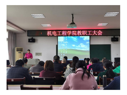 院长李立君教授从本科教学、研究生教育、科研与学科竞赛、资产管理与实验室建设、创新创业、学生工作等6个方面,对学院近期重点工作进行详细的安排和部署,并要求全体教职工认真贯彻落实,同时要结合湖南省“三高四新”战略,努力展现机电工程学院的担当和作为。她强调,“十四五”期间,学院头等重要的工作就是要确保成功申报机械专业博士点,她希望大家朝着这一目标共同努力,做好申博的各项准备工作。