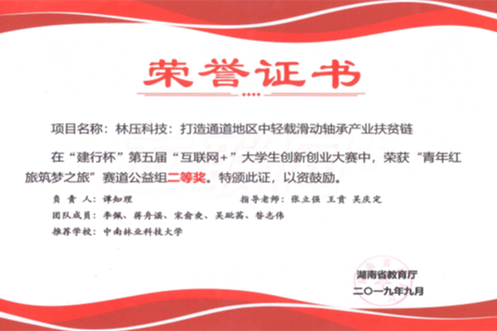 我院“林压科技”团队荣获“建行杯”第五届湖南省“互联网+”大学生创新创业大赛决赛二等奖