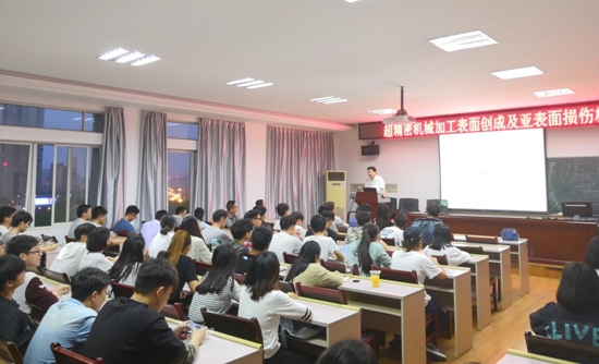 讲座中,李甲深入浅出的介绍了自己团队主要研究方向 ——“超精密机械加工表面创成及亚表面损伤机理”,并详述了该研究的实践应用。与此同时,李甲结合自身求学经历,与师生分享了他在研究生学习期间的一些趣事、际遇和挫折,大致描述了国内外学术界的区别。他强调,大学生要有自己的人生追求,要努力实现自己的社会价值,担当时代赋予的使命,他鼓励大家学习务必要打好基础,不怕困难,为继续深造做好准备。互动环节,同学们就考研方向等共同关心的事情提出问题,李甲先生耐心地进行了解答。